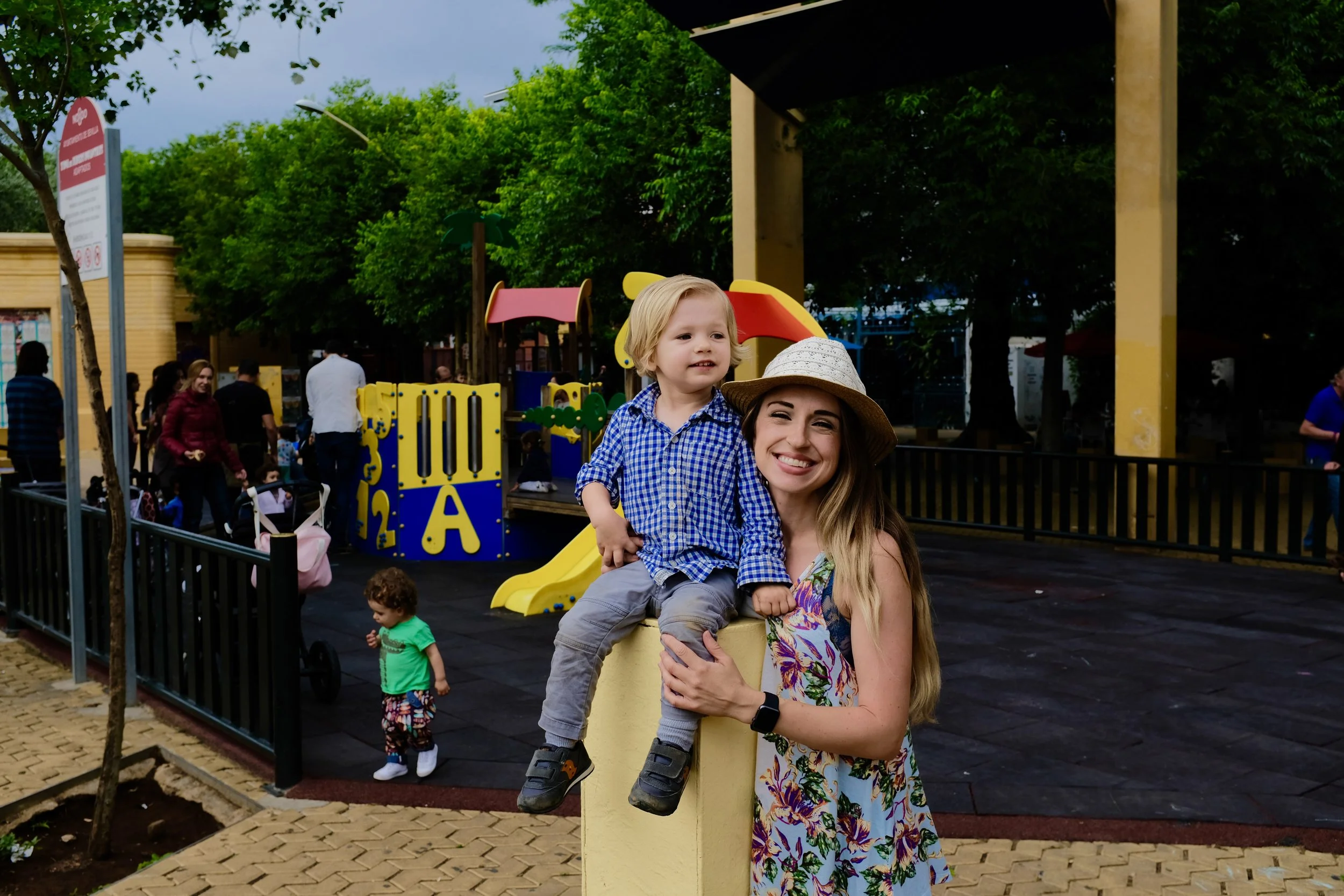 The playgrounds at Alameda de Hercules are fantastic. There are two different playground structures – one taller and better for older children and one lower to the ground and better for younger children. Since Jimmy is only two, we stick to the smaller one. It’s completely shaded. There are always many local Spanish families playing there and hanging out. Jimmy usually makes a friend or two. For more info on my other favorite playgrounds in Seville, check out my blog post here.