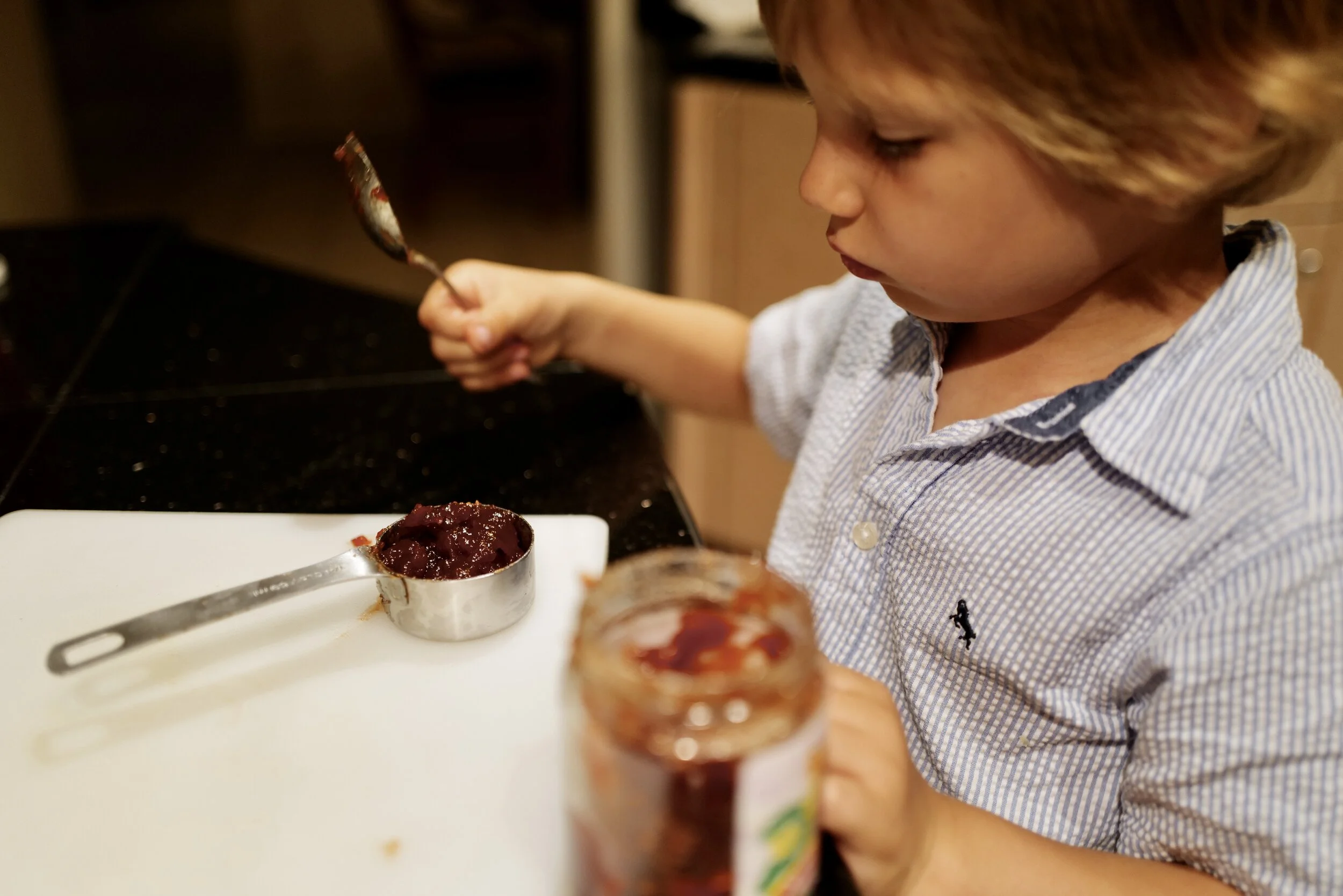 Jimmy loves helping me in the kitchen. He wants to be a chef when he grows up. I love finding simple ways that he can help, like measuring the ingredients and putting things together. It always takes longer when he helps me, but he loves it, and it’s great bonding time for the two of us.